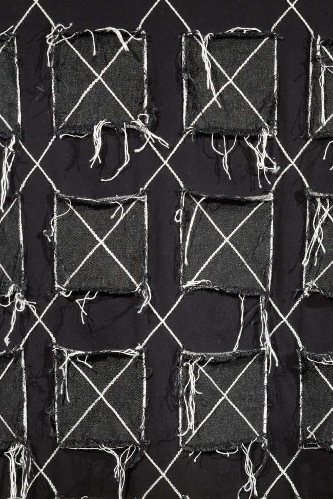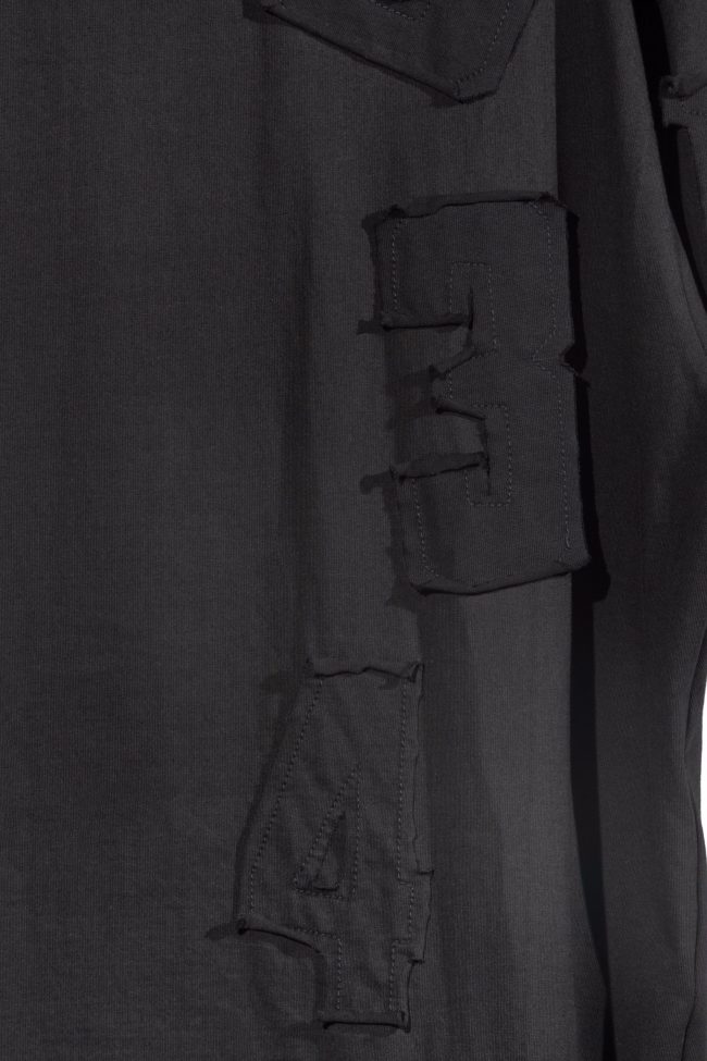 Grey wool rectangle shape with argyle sewing patchwork t-shirt