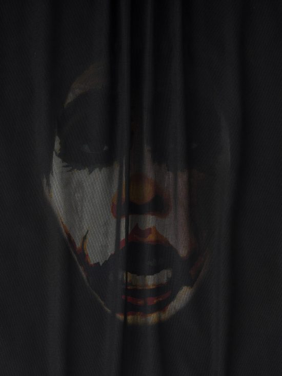 Clown behind curtain t-shirt