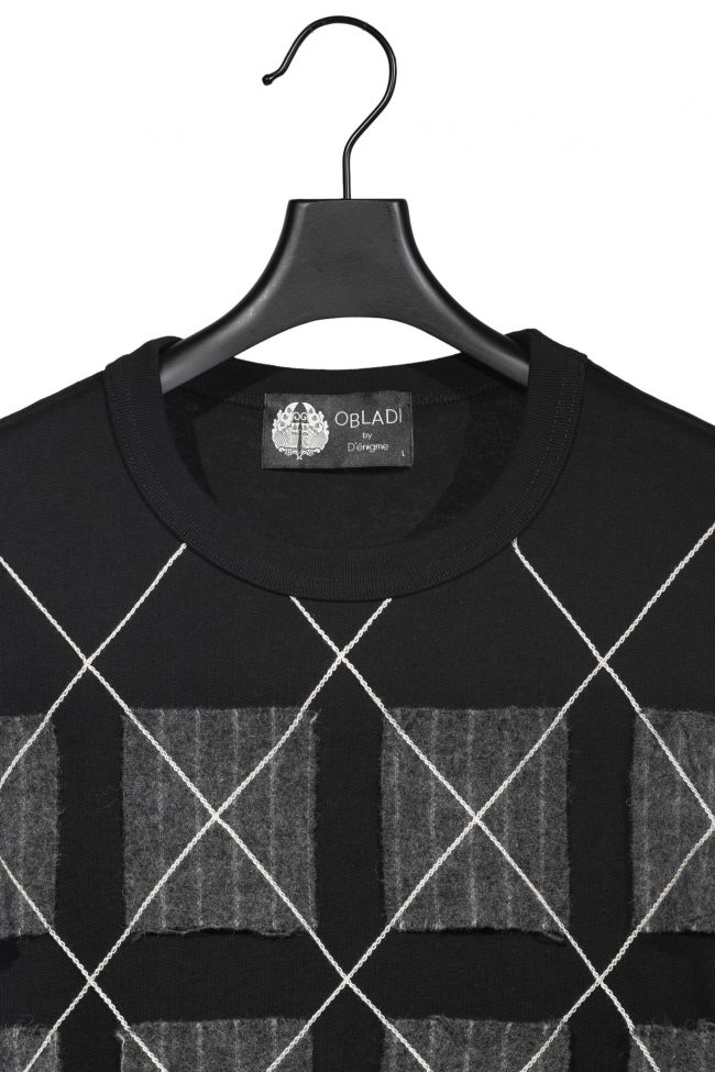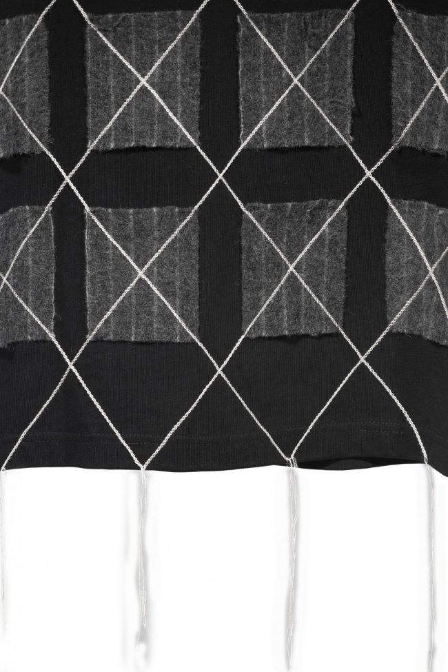 Grey wool rectangle shape with argyle sewing patchwork t-shirt
