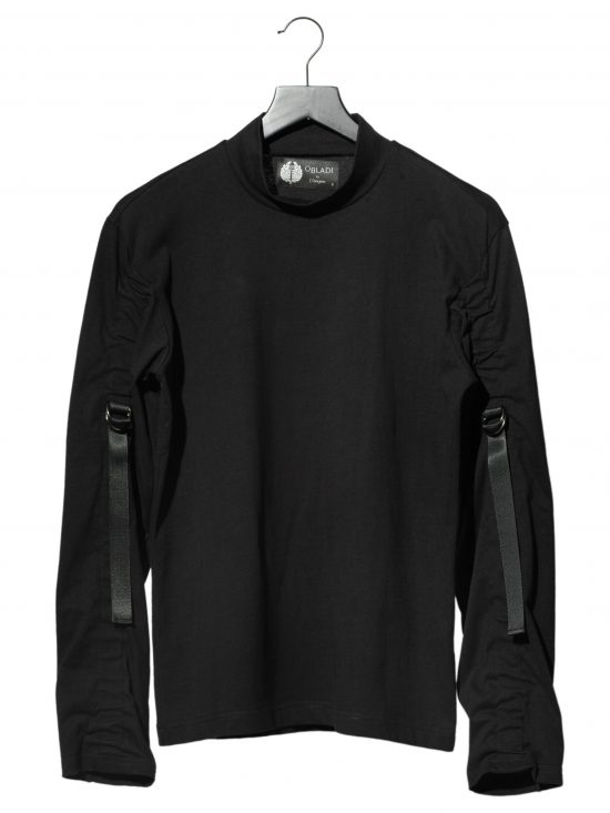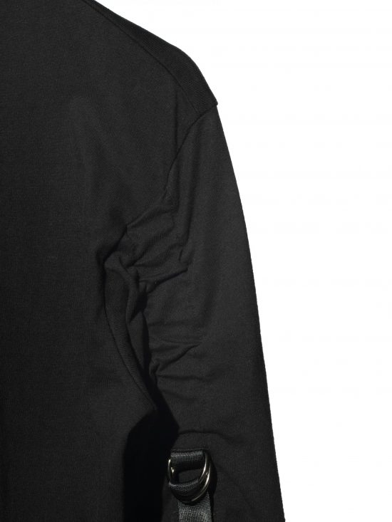 T- Shirt with 2 metal D-rings on the sleeves with adjustable tape.