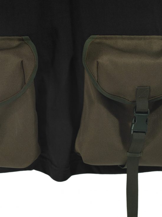 2 bags at the bottom back of the T-shirt, come in 2 colors, Black and Moss green. Suitable for fashion wear, eye catching design.