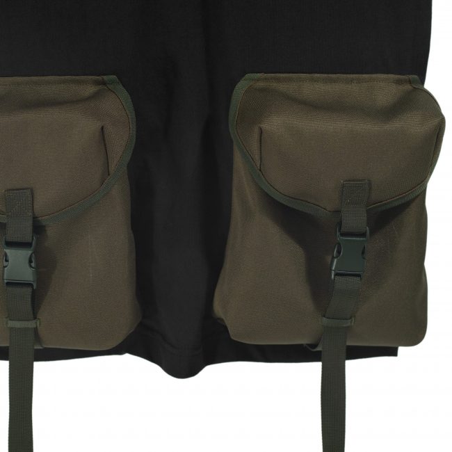 2 bags at the bottom back of the T-shirt, come in 2 colors, Black and Moss green. Suitable for fashion wear, eye catching design.