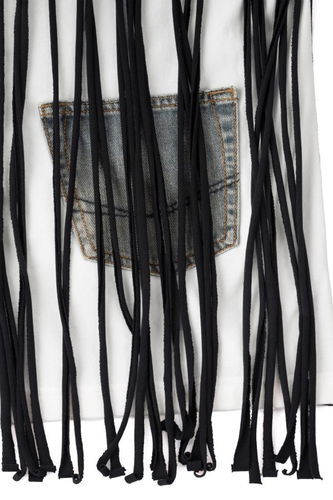 T-shirt with a fringe cut and jeans pocket in front layer.