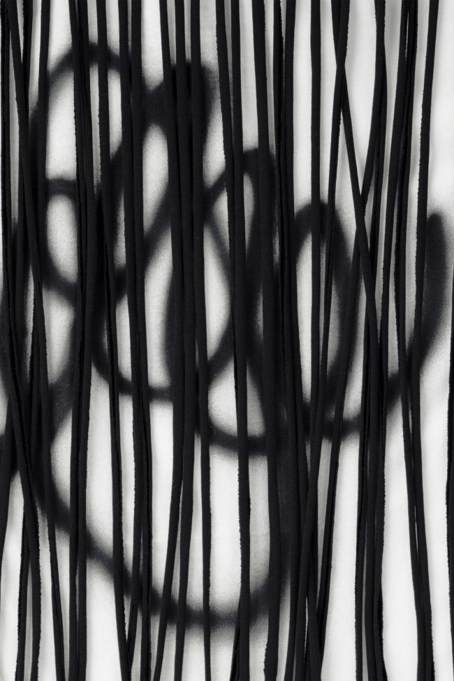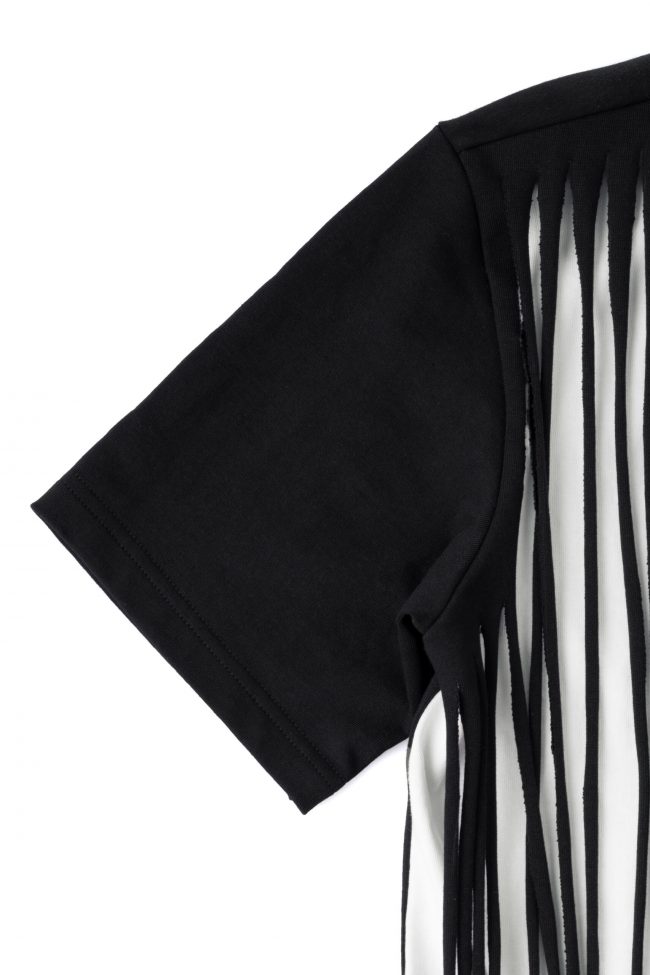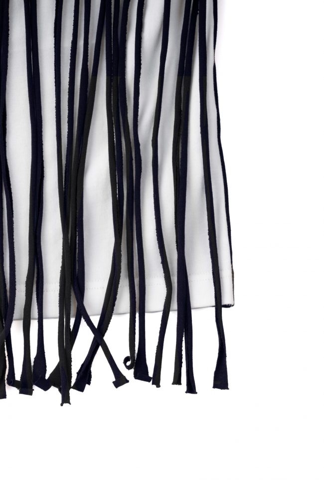 T-shirt with airbrush paint and a fringe cut layer in the front.