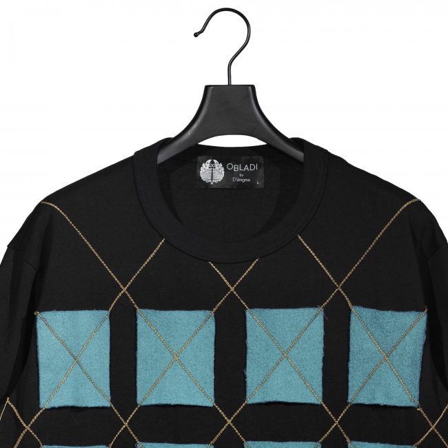Wool rectangle shape with argyle sewing patchwork t-shirt